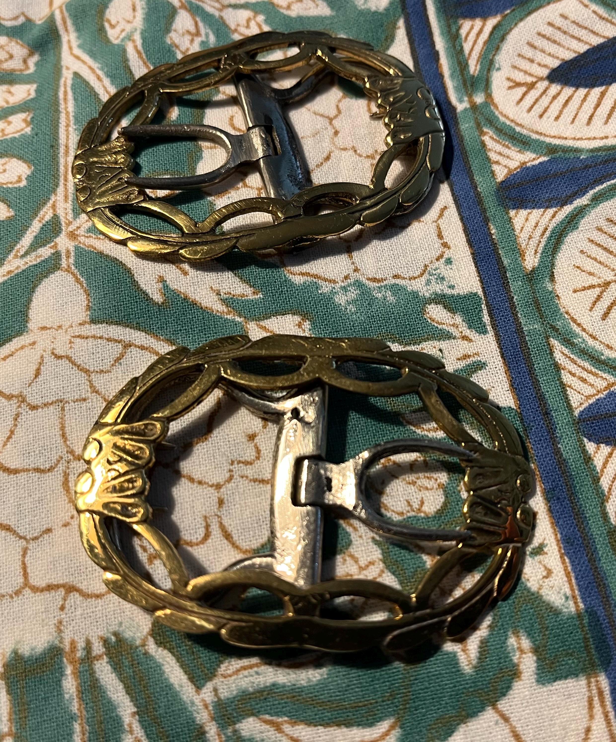 Gold Tone Shoe Buckles Brass and Steel **Fancy Style 1** Pair